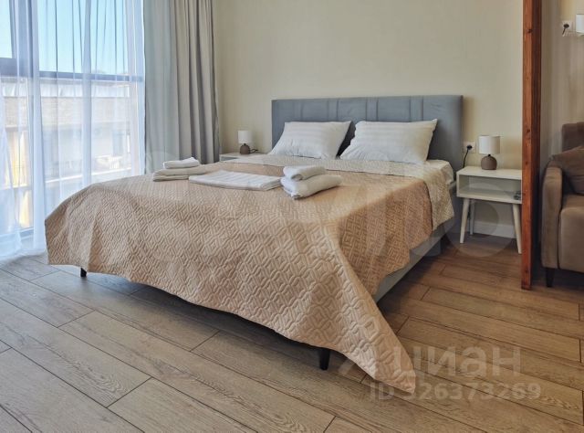 СОБСТВЕННИК. КВАРТИРА СВОБОДНА С 02 ФЕВРАЛЯ 2026. С новым ремонтом, новой мебелью и всей необходимой новой бытовой техникой. Сдаётся на срок до 01 июня 2026. В квартире двуспальная кровать с мягким изголовьем в отдельной зоне, очень комфортный ортопедический диван Аскона, прихожая, шкаф, кухонный гарнитур, встроенная плита, холодильник, чайник, микроволновая печь, кондиционер, стиральная машина, пылесос, сушилка для белья, стол, 4 стула. вся необходимая посуда. Балкон с панорамным остеклением, вид на гору, снизу затонирован. Проведён высокоскоростной интернет Ростелеком 5G (Wi-Fi). ЖК Времена года корпус Весна. Дом оснащён большим лифтом. Придомовая территория: озеленение, парковка, детские площадки на любой возраст. Рядом гипермаркет Магнит Экстра, Восточный рынок, детский развлекательный центр, батутный центр. В квартире курить запрещено. С животными нельзя. До моря 30 минут пешком.
