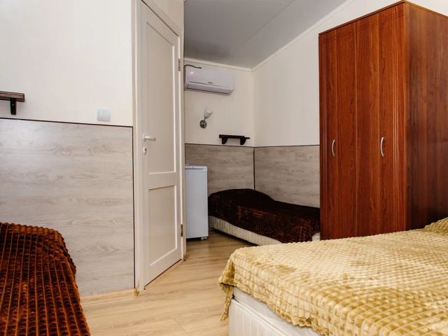 Уютный новый номер с двумя отдельными спальнями. В номере есть телевизор, шкаф для белья, удобный диванчик, кухонная мебель. Посуда, чайник, микроволновая печь, фен, утюг. Все к вашим услугам. Возможно размещение с животными(строго по согласованию).