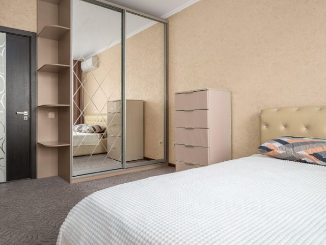 Мебель: Мебель вся новая и современная. Двуспальная кровать и два дивана (2-х спальных), гардеробная комната, кухня полностью, стол и стулья на кухне, на балконе место для курения.