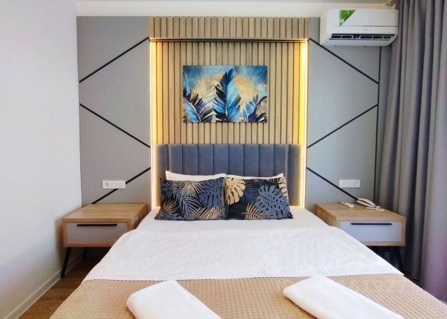 В спальне - бесплатный wi fi, телевизор с плоским экраном, кабельное телевидение, кондиционер, раскладной диван и 2-х спальная кровать, прикроватные тумбочки, одежды, туалетный столик с зеркалом.