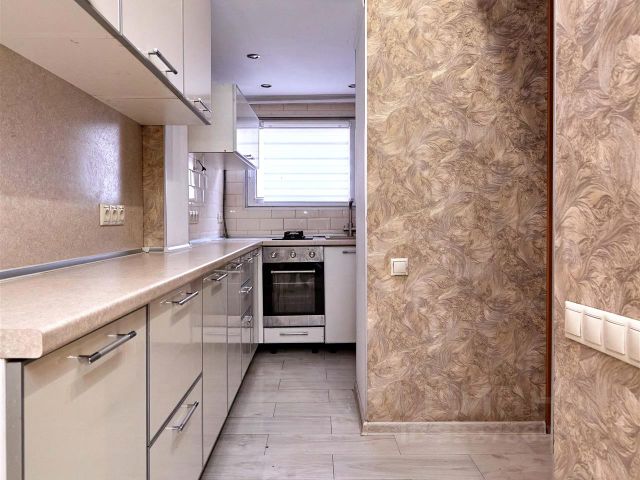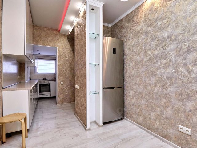 Полностью оборудованная кухня — холодильник, индукционная плита, электрочайник, сплитсистема, посуда, кухонные приборы, полотенца, тряпки, бутыль с пищевой водой, мыло, средство для мытья посуды
