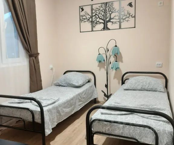 Сдаются два идентичных жилья по отдельности 1 и 2 этажи в коттедже каждый по 120 кВ.м. с разными входами в дом. Это два отдельных жилья. Они полностью изолированы друг от другда. В каждом жилье 4 комнаты (3 изолированные спальни), кухня, сан.узел. Во дворе сдается только два жилья, больше номеров нет. Двор большой зеленый и общий на оба жилья, также в отдельном домике в этом дворе живут адекватные хозяева.