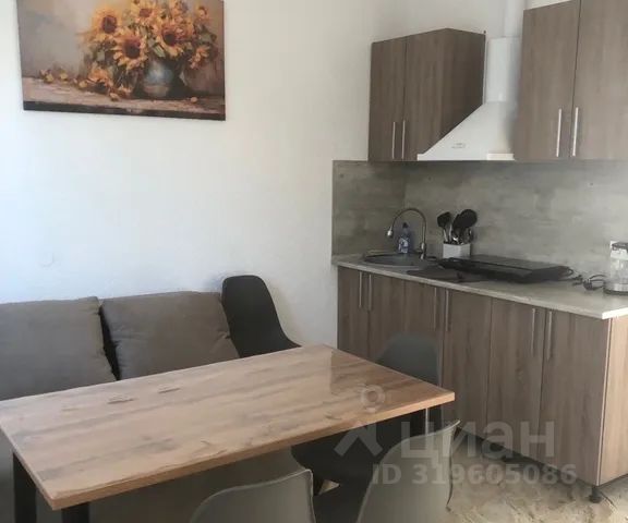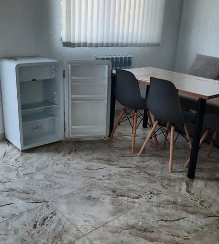 На первом этаже большая гостевая комната в которой кухонные шкафы со всей необходимой посудой для еды и приготовления пищи, барная стойка для коктейлей и кофе, холодильник большой с морозильной камерой, гостевой шкаф для большого количества личных вещей, большой кухонный стол с 4 стульями, диван раскладушка для сна двоих человек, телевизор, сплит система.