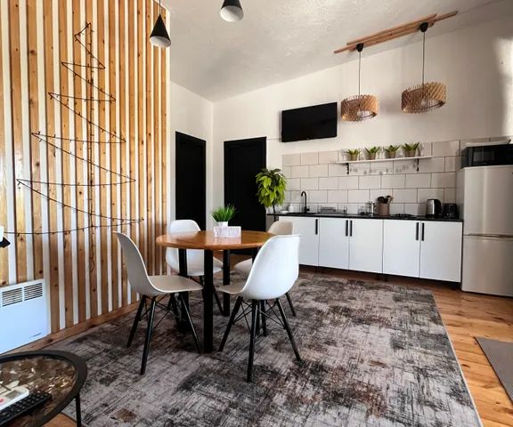 - Кухня-гостиная с необходимыми кухонными принадлежностями (фильтр воды тройной очистки, варочная панель, холодильник, микроволновая печь, чайник) и посудой для 3 человек.