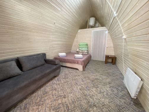 Наш дом, как и баня, может вместить две семьи, максимум до 8 гостей (4 взрослых и 4 детей) - 2 двуспальные кровати для взрослых, и дополнительные места - 4 гамака, в которых могут разместиться дети за доплату.