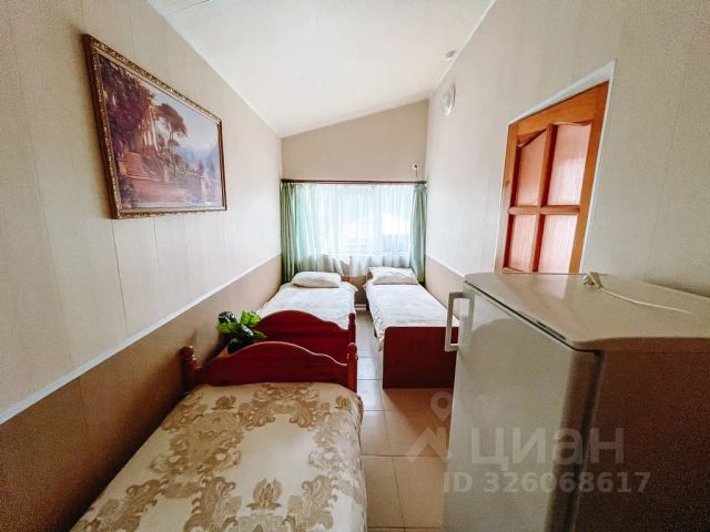 В большой комнате двухспальная кровать, два дивана двухспальных, шкаф пенал, тумба, телевизор, вешалка для одежды