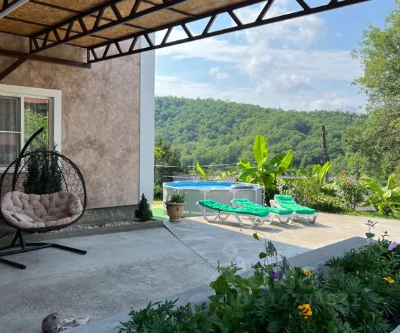 Всех рад приветствовать в шикарном и уютном коттедже на берегу Черного моря. На земельном участке в 7,5 соток разместилось три новых коттеджа-барн хауса, все построено из бетона и блоков, поэтому нет никаких вибраций пола, и плохой шумоизоляции. В нынешнем сезоне сдается один коттедж (второй возможно рассмотреть только как дополнительные 2 спальных места), поэтому вся территория в Вашем распоряжении. Участок окружен деревьями, которые дают естественную тень, во дворе находится очень комфортно даже в летний зной! 8 вечно зеленых магнолий, 3 пальмы, 3 сосны, все что будет в Вашем распоряжении, на протяжении всего отдыха. Но для доступа к этому красивому месту не надо ехать далеко в горы, асфальтированная дорога подходит до ворот! Местность ровная. Путь к морю в 600 метров проходит по тенистой асфальтированной улице. В шаговой доступности расположена столовая и отличный продуктовый магазин, с адекватными ценами! Ресторан с очень вкусной пиццей и открытый подогреваемый бассейн в 400 метрах от нашего комплекса! Находясь в нашем гостевом доме, вы получаете комфорт и уединение с природой одновременно, это редкое сочетание! Южный это место, которое может Вас погрузить в настоящий релакс, в дали от шумных вечеринок, пьяных гопников, шаурмичных ларьков, и всего летнего многообразия! Это место где Ваши дети будут в безопасности, даже находясь за пределами нашего комплекса! О самом доме: площадь 72 м2, в которую входит летняя терраса, домик создан для семьи из 4 человек! Шикарный ремонт, домик оборудован всей современной бытовой техникой, хороших производителей! Инверторная сплит система, рассчитана с большим запасом! Установлена стиральная машинка, посудомоечная машинка, микроволновка, телевизор, духовой шкаф, фен. Все остальное не обсуждается, все что есть у вас дома, есть в нашем коттедже! На первом этаже размещена кухня-гостиная, и детская спальная комната с двумя кроватями (190 на 70). На втором этаже установлена двуспальная кровать (160 на 200). Выход из гостиной на большую летнюю террасу, где размещены диван и два кресла, а также барная стойка. Во дворе есть место для отдыха, стол для застолья, и мангал! Парковка на три автомобиля! Если у вас небольшая собачка, милости просим! Ваши дети получат массу удовольствия, и все время будут на Ваших глазах! Уборка проводится один раз в три дня! Белье и полотенца для душа в комплекте! Пляжные не предоставляются. Если вы цените домашний уют и комфорт проживания, вы оцените по достоинству наш объект!