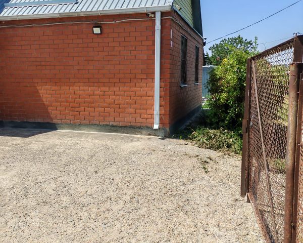 Передний двор : на два парковочных места, навес, плитка, по надобности мощно освещается.