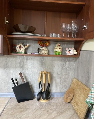 Полностью оборудованная кухня (плита, холодильник, чайник, посуда)