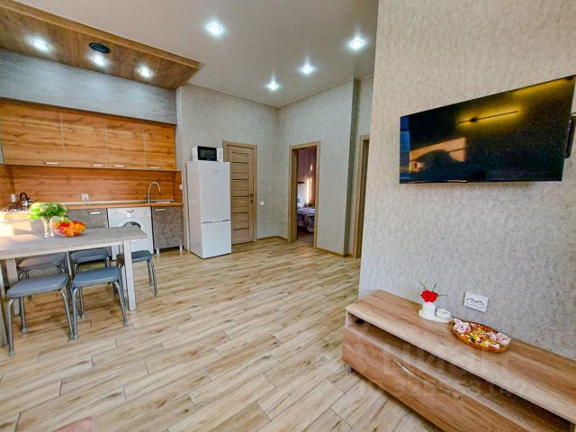 На 1 этаже - гостиная с телевизором+ 4 спальных места (2 дивана) , кондиционер.