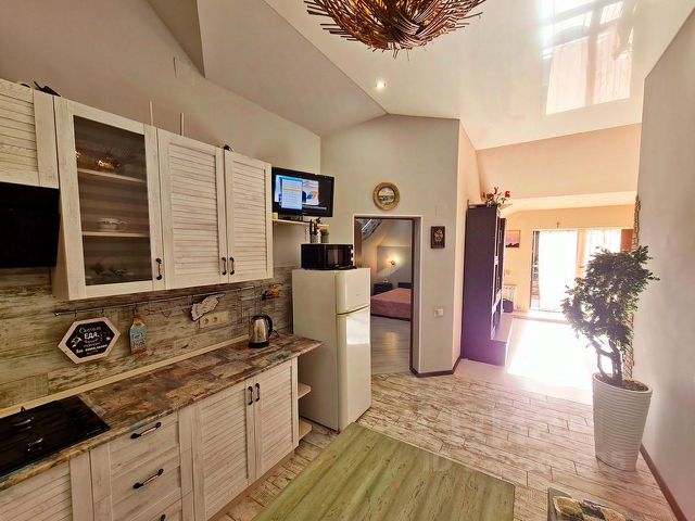 в сутки,(в летний период взимается предоплата за сутки при бронировании). Возможно сдача до летнего периода помесячно, ( 25000 в месяц, в эту сумму входит коммуналка), ( Заселение на один месяц 30000). Имеется WI-FI и проводной интернет. В спальной зоне находится двухспальная кровать шириной 1,6 м и двухспальный диван 1,4 м шириной. Имеется своя кухня, с кухонной утварью, душевая комната с принудительной вытяжкой, кабельное телевидение (смарт тв),спутниковое IPTV триколор, просмотр новых фильмов по сети, инверторная сплит-система, инверторная стиральная машина, посудомоечная машина, инверторный холодильник, микроволновая печь, термопот, тостер, мясорубка, мультиварка, погружной блендер, стационарный блендер, мультиперкарь ( со съемной панелью "венские вафли"), электрический гриль, кухонные весы, кофеварка с автоматическим капучинатором , кофемолка, бутербродница, соковыжималка, духовой шкаф, встроенная газовая печь, кухонная вытяжка, очистка водопроводной воды из центрального водопровода (механический фильтр и угольный фильтр), для питья установлена шестиступенчатая система очистки воды с минерализацией, фен, утюг, сушилка и гладилка для белья, электрические уличные жалюзи, детский стульчик для кормления, средства для мойки посуды, порошок для белья, гель для душа, туалетная бумага, освежители воздуха, принадлежности для уборки и стирки, пылесос, на территории имеется небольшой стол со стульями и большой стол со скамьями и зонтом от солнца, мангал с принадлежностями для барбекю(решетка-гриль, шампура, вилка, веер).В зимнее время номер отапливается тёплыми полами и дополнительно конвекторами. Парковка для автомобилей, рядом с жильем комплекс продуктовых магазинов, не далеко находится парк имени Поддубного, центр города, пляж "КАМЕНКА", аквапарк, дельфинарий, океанариум. Заселение с животными строго по договоренности и будет считаться дополнительной платной услугой, заселение возможно только с маленькими животными, ручные собачки весом до 5 килограмм, с большими животными такие как собаки, а особенно бойцовских пород заселение строго запрещено. Заселение для проведение различных мероприятий, в том числе с большим количеством человек исключены. Заселение несовершеннолетних подростков без родителей невозможно. Не заселяем гостей в состоянии алкогольного опьянения. При порче имущества взимается плата в зависимости от стоимости этого испорченного имущества. Предоставляем услугу трансфера.