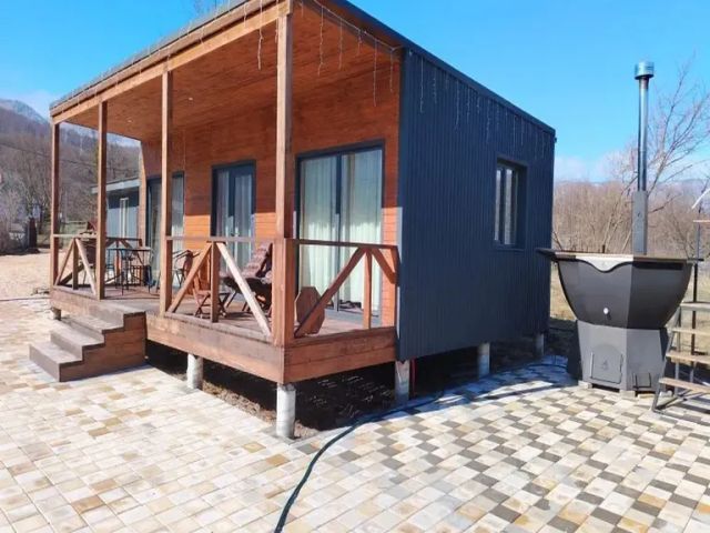 Большой дом у Беджо / Дом до 6 человек с чаном и баней. Просторный дом для большой компании или семьи. В вашем распоряжении — отдельная терраса с мангалом, доступ к общим двум чанам с подогревом и настоящей бане на дровах. Это идеальное место, чтобы весело и с комфортом отпраздновать событие или просто отдохнуть от города. Почему стоит выбрать этот дом? - Простор для всех: в доме комфортно разместятся до 6 гостей. Идеальный вариант для семьи с детьми, компании друзей или коллег. - Дворовые радости: у дома есть собственная большая терраса с мебелью и отдельным мангалом. Готовьте шашлык, не мешая соседям, и устройте обед на свежем воздухе. - Главные бонусы комплекса: выходя из дома, вы попадаете в зону отдыха с двумя чанами с подогревом (круглый год) и баней на дровах — это лучший способ расслабиться после насыщенного дня. Полная автономия: внутри есть всё необходимое для жизни — от кондиционера до посуды. Удобства в доме: - Зона отдыха с телевизором. - Кондиционер для комфортной температуры. - Компактная кухонная зона: холодильник, электрическая плитка, микроволновая печь, чайник. - Санузел с душем, фен. Что вас ждет на территории: - Два общих чана (купель) с подогревом. - Общая баня на дровах (топится по договоренности с администратором). - Бесплатная парковка для ваших автомобилей. - Бесплатный Wi-Fi. Условия проживания: - Размещение с домашними животными возможно по предварительной договоренности (пожалуйста, предупредите нас заранее). - Заезд удобный, территория огорожена и ухожена. Важно для бронирования: В зависимости от сезона и дня недели стоимость может меняться. Чтобы уточнить цену на нужные даты и забронировать этот уютный дом, нажмите кнопку "Забронировать" или напишите нам в чат. Ответим быстро!