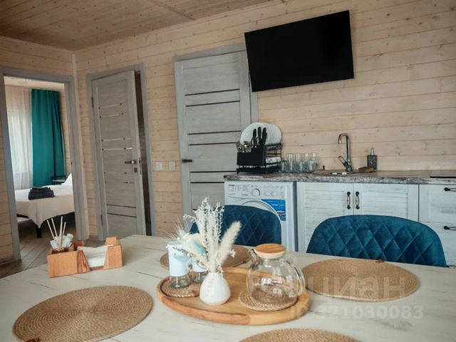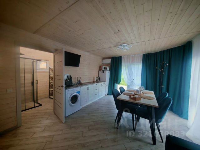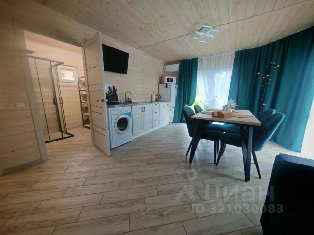 На 1-м этаже — прихожая, стильная кухня с островом, барные стулья, столовая зона, санузел, духовой шкаф и электроплита, вся необходимая посуда.