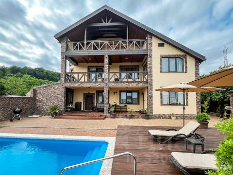 Большой коттедж 4 этажа в классическом стиле (камень-дерево), с двумя тёплыми бассейнами на территории 25 сот. в живописном, абсолютно тихом и очень зеленом месте, в 20-30 минутах езды от центра Краснодара. Своё озеро с форелью, рыбалка себе на стол.