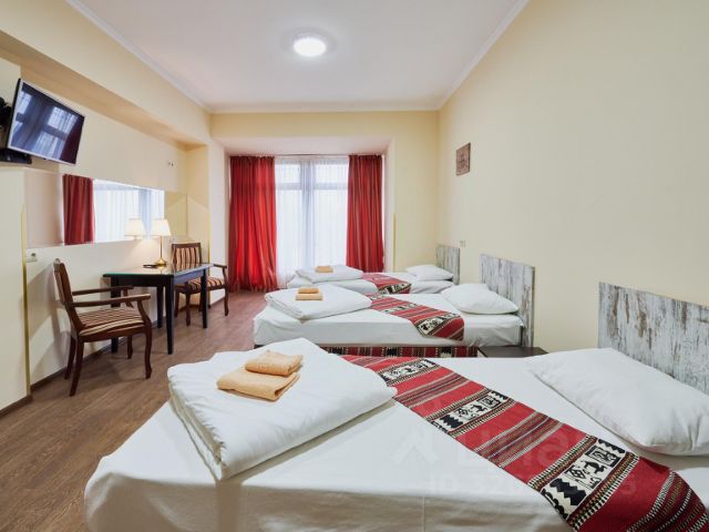 Небольшой уютный номер с окном, двумя двухуровневыми кроватями "купе", столом, 2 шкафа, кондиционер