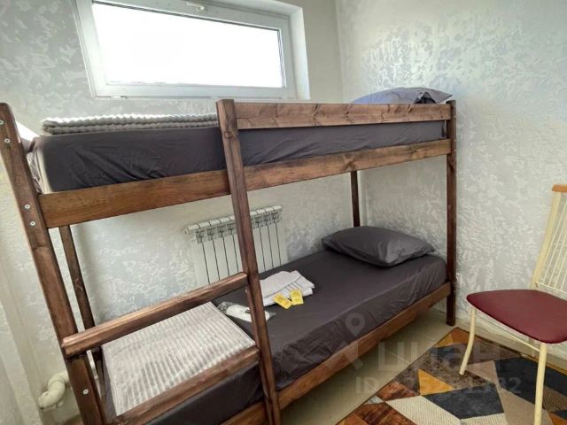 Кровать в женском четырехместном номере. Уютный светлый номер, предназначенный для проживания только в женской компании. Каждое спальное место оборудовано ортопедическим матрасом, индивидуальной лампочкой освещения, розеткой и шкафчиком для личных вещей. Душевые и санузлы расположены на этаже.