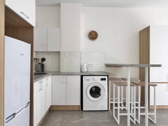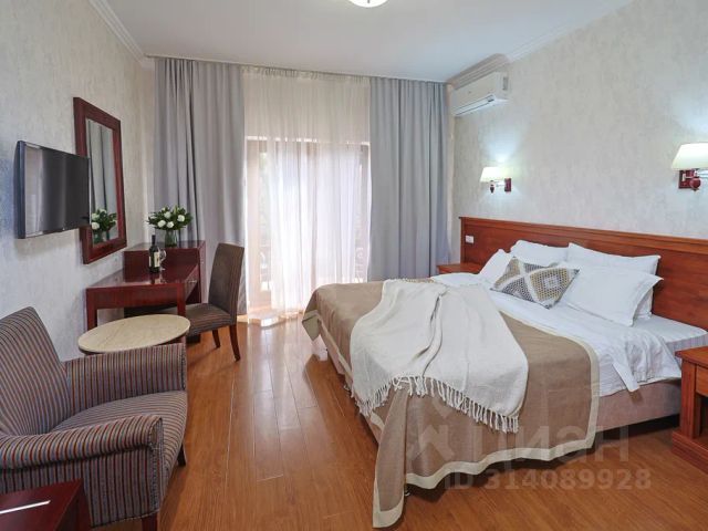 Просторная студия общей площадью 30 кв.м. с зоной отдыха возле номера. Кухонный уголок: одноконфорочная индукционная плита, холодильник с морозильной камерой, мойка, посуда для приготовления пищи (кастрюли, сковорода, кухонные принадлежности), посуда для приема пищи (тарелки, кружки, стаканы, столовые приборы); барная стойка, стулья; стиральная машина. Спальная зона: двуспальная кровать, односпальная кровать; шкаф, вешалка, телевизор, кондиционер; шторы блэк-аут. Раздельный санузел. Душ, комплект полотенец, тапочки, набор гостиничной косметики. Также возможно размещение доп. места в виде евро-раскладушки.