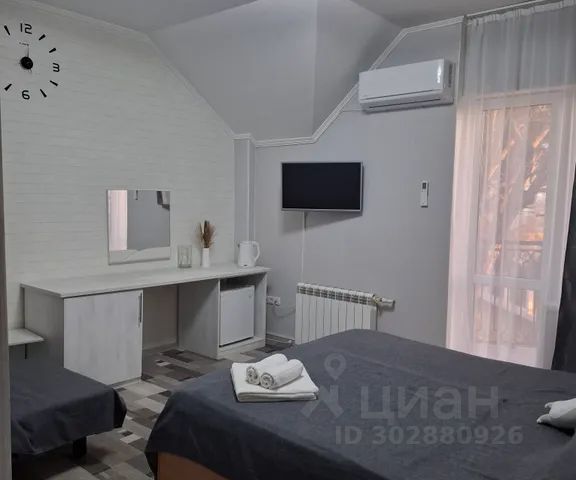 Двухкомнатный номер-эконом находится в летнем коттедже из 2-х этажей на территории частного сектора. Это наиболее доступный и экономичный вариант размещения, сочетающий в себе удобство и простоту за очень приемлемые цены. Номер находится на втором этаже. Расстояние до чистейшего моря по пологой дорожке 5-7 мин. Два вида пляжа: неорганизованный песок, сан. "голубая волна" - галька, вход свободный. Номер не предназначен для детей до 7-х лет