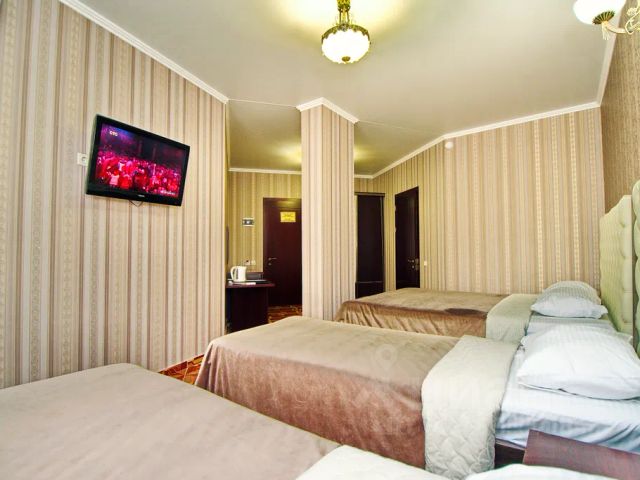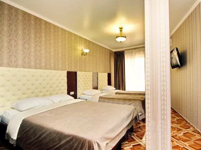 Гостиница "Металлург" расположена в городе Абинске в новом 9-этажном жилом комплексе "Сталь" возле Абинского ЭлекроМеталлургического завода. Гостиница предлагает гостям современные номера, в которых могут разместиться семьи. Новое здание комплекса возведено с соблюдением всех стандартов при строительстве, что обеспечивает выполнение требований безопасности, качества и экологичности оснащения. Комнаты обладают функциональной планировкой, в них есть удобное рабочее место, светонепроницаемые шторы, просторная душевая кабина, мощный фен и система кондиционирования, с помощью которой каждый гость может настроить комфортную для него температуру. Также имеются телевизор и холодильник. Гости могут воспользоваться гладильной комнатой, услугами прачечной. Для удобства предусмотрен вызов такси. Рядом: спортивно-оздоровительный комплекс с плавательным бассейном и кафе-магазин. Парковка для гостей. Гостиница расположена рядом с оздоровительным комплексом. Гости могут за дополнительную плату воспользоваться плавательным бассейном, сауной и спортивным залом. Просторный двухкомнатный номер повышенной комфортности, площадью 42 кв.м. Размер: 42 м² Тип кровати: 1 двуспальная кровать, 2 односпальные Удобства: Wi-Fi, Багажная тумба, Банные полотенца, Бесключевой доступ, Вешалки, Душевая кабина, Зеркало, Система климат контроля, сушитель для полотенец, Средства гигиены в ванной комнате, ТВ, Удобная рабочая зона со столом и стулом, Фен, Халаты и тапочки, Холодильник, Чайная станция и набор чая, Шкаф для одежды. Оплата за посещение оздоровительного комплекса взимается дополнительно (прейскурант цен на бассейн)