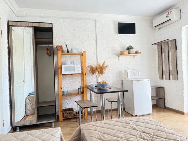 Приветствую в замечательном городке Ейск - изюминке Азовского моря. Здесь вы можете, помимо принятия водных процедур и оздоровления в санатории, обучиться виндсёрфингу, погрузиться в кубанский колорит, а также посетить большое количество экскурсий! К вашим услугам двухкомнатный номер, площадью 50 м², имеющий отдельный вход с улицы. Находится на втором этаже. Гостевой дом "Анжелика" расположен в 7 минутах ходьбы от песчаного пляжа Ейского лимана. На просторной территории расположены - мангальная и зелёная зоны, терраса с видом на море со столиками и шезлонгами, качели, гамаки. Зона для курения. Парковочные места. В шаговой доступности находятся 2 гипер-маркета магнит (круглосуточный), пятёрочки, светофор, центр города, Ейский Арбат, центральный рынок, столовые, кафе, парки с развлечениями, музеи, санаторий Ейск. Услуга няни при необходимости. С животными не принимаем. В однокомнатном четырехместном номере повышенной комфортности: 1 двуспальная кровать и 1 раскладной диван, шкаф, прикроватные тумбочки, туалетный и журнальный столики, зеркало, телевизор, беспроводной интернет, встроенный вентилятор. Спальная ниша отделена шторой. Присутствуют собственная мини кухня и сан. узел. Номер имеет собственную террасу с уличной мебелью.