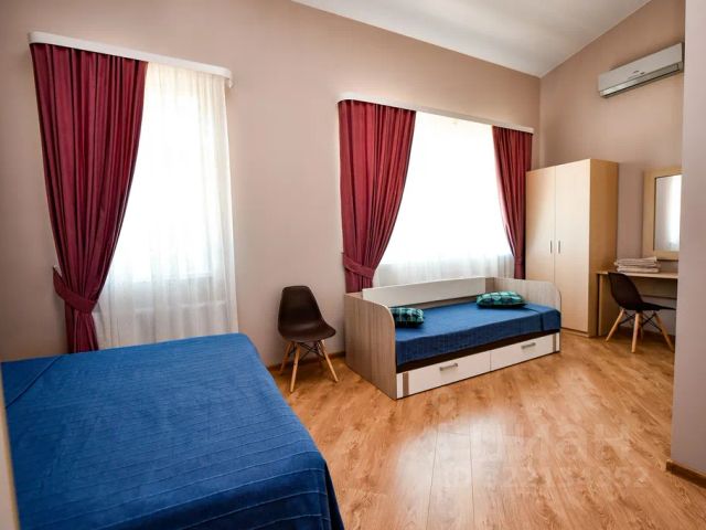 Море - здоровье, радость, энергия и восторг. Гостевой дом LSHinn располагается на берегу Азовского моря в городе Ейске - комфорт, уют, забота и умиротворение. Если объединить это в одну комбинацию, то получится классный, незабываемый и неповторимый отдых. Наш открытый подогреваемый бассейн и джакузи позволят расслабиться и максимально восстановиться. Наши элегантно оформленные номера с панорамными окнами подарят Вам возможность окунуться в атмосферу покоя и наслаждения. Номера оборудованы всем необходимым для полноценного и комфортного отдыха: от ортопедических матрасов и мягких халатов до качественной косметики. Удобство в номере обеспечивается с помощью сейфа, большого холодильника, чайной станции, телефона, Wi-FI, плазменной панели, шторами блэкаут. У нас вы также можете заказать вкусные и сытные завтраки, обеды и ужины. Хотите привезти с отдыха яркие фотографии с красивыми, стильными локациями, тогда бронируйте именно нас! Наши объятья распахнуты для Вас: дарим только счастливые и незабываемые моменты. Гостевой дом LSHinn - место, где Вам всегда рады! Изысканный номер с панорамными окнами и видом на море, двумя дизайнерскими креслами, 1 большой двуспальной кроватью. Удобство в номере обеспечивается с помощью журнального стола, сейфа, плазменной панели, Wi-fi, набора чай-кофе, телефона. Ванная оснащена душевой, феном, мягким халатом, тапочками, косметическим набором.