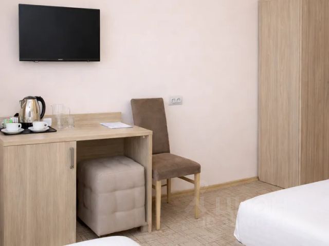 Studio room с двумя раздельными кроватями или одной большой и диваном. Можно с животными декоративных пород до 10 кг с обязательным согласованием с администрацией, стоимость размещения животного 1000 рублей в сутки.