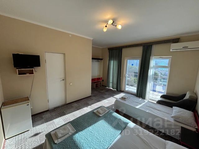 Номер оснащен ванной комнатой с душевой кабиной и санузлом, феном и гигиеническими принадлежностями. Есть холодильник, шторы blackout, теплый ковролин на полу. Вид через панорамное окно на бассейн. Общая площадь каждого номера - 27 кв. м.