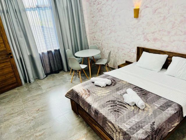 Гостиничный комплекс "Кремниевы термы" расположен в станице Ярославской Мостовского района Краснодарского края, в окружении природы и чистого воздуха, что способствует благоприятному отдыху. Для размещения гостям предлагаются номера различных категорий и коттеджи оснащенные всеми удобствами для комфортного отдыха. В номерах: комфортабельные спальные места, прикроватные тумбочки, кондиционер, телевизор, электрический чайник. Санузел с качественной европейской сантехникой и душевой кабиной. Стандартный набор гостиничных принадлежностей добавляют комфорт и удобство для отдыха. Отель располагает термальным бассейном с минеральной водой и гидромассажером, а также купелями, которые расположены рядом с основным бассейном. Спа-центр предоставляет массу релакс-процедур, услуг и оздоровительных программ, в которых используется полезные свойства термальных вод. Поклонники активного образа жизни могут провести время на спортивной площадке и поиграть в мини-футбол, баскетбол или теннис. На территории имеется мангальная зона, на пруду можно кататься на лодках или порыбачить. Для детей оборудована детская площадка с горками и качелями. Для туристов, приехавших на личном транспорте, предусмотрена охраняемая автостоянка. Ресторан "Веранда" предлагает гостям завтраки и обеды. В меню заведения есть блюда русской, европейской, кавказской, паназиатской кухни. Уютный номер с большой двуспальной кроватью и двуспальным диваном. В номере: прикроватные тумбочки, кондиционер, телевизор, электрический чайник. Санузел с качественной европейской сантехникой и душевой кабиной. Стандартный набор гостиничных принадлежностей добавляют комфорт и удобство для отдыха.