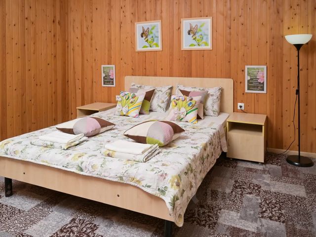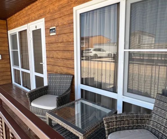 Приглашаем отдохнуть в уютном экономере гостевого дома Морское Небо, расположенном на живописном Азовском побережье. Здесь гармонично сочетаются спокойствие уединённого отдыха и удобная доступность всех необходимых объектов инфраструктуры. Расположение Гостевой дом находится в тихом переулке — здесь вас ждёт покой и умиротворение вдали от шумных туристических троп. При этом всего в 5 минутах ходьбы — центр посёлка с его удобствами: * большой магазин Пятёрочка с банкоматами; * прилавки с сельскохозяйственными продуктами домашнего производства; * автобусная остановка с маршрутным такси; * множество небольших магазинчиков; * вещевой рынок. До широкого песчаного пляжа — всего 10 минут пешком (590 м). Вы сможете легко сочетать активный шопинг и бытовые дела с расслабленным пляжным отдыхом. Особенности гостевого дома В гостинице всего семь номеров — это гарантирует камерную атмосферу и повышенное внимание к каждому гостю. На территории: * бассейн с подогревом — идеальное место для расслабления в любое время года; * зелёная зона с обилием растений и деревьев, создающая приятную тень и свежий воздух; * детская площадка — дети будут в восторге от безопасных и интересных развлечений; * зона барбекю — отличное место для дружеских встреч и семейных пикников; * большая общая кухня, полностью оборудованная всем необходимым для самостоятельного приготовления пищи (в 30 м от номера) — готовьте любимые блюда с комфортом. Описание номера Экономер площадью 30 кв. м отделан деревом — это создаёт особую тёплую и природную атмосферу. В номере есть всё для комфортного проживания: * двуспальная кровать; * двухместный диван; * две прикроватные тумбочки; * комод; * платяной шкаф; * большой холодильник с морозильной камерой; * сплитсистема (обеспечит комфортную температуру в любую погоду); * ЖКтелевизор с цифровым ТВ; * бесплатный беспроводной интернет; * санузел с душем, подачей горячей и холодной воды; * библиотека (чтобы скрасить вечера); * собственная веранда с обеденным столом и четырьмя стульями — идеальное место для утреннего кофе или вечернего чаепития с видом на зелень. Погрузитесь в атмосферу спокойствия и гармонии: наслаждайтесь морским бризом, зеленью вокруг, близостью к пляжу и удобством расположения гостевого дома. Гостевой дом Морское Небо — ваш идеальный выбор для отдыха на Азовском море!