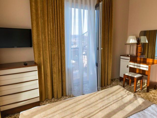 1-комнатный номер площадью 38 кв.м. В номере имеется 1 2-спальная кровать, гардероб (шкаф купе) с зеркалами в полный рост, чемоданница, рабочий стол, минибар, полукресло, буфет с набором посуды, мягкий уголок с 2 мягкими креслами, журнальным столиком, раскладным 2-спальным диваном, телевизор с плоским экраном, телефон, полный санузел с душевой кабиной и гигиеническим душем. В ванной комнате мраморная столешница, фен, косметическое зеркало, набор полотенец, полотенце-сушитель. Номер оснащен индивидуальным сейфом, сплит-системой, радиатором отопления.