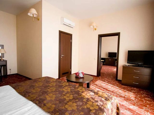Двухкомнатный номер эконом, оборудован необходимой мебелью- кровати, прикроватные тумбочки, стол, стулья, гардероб, зеркало 120*50, а так же кондиционер, wi-fi, телевизор, холодильник. Вход в номер отдельный с открытой веранды. Сан. узлы для этого номера на этаже, два сан. Узла приходится на три номера. Всего в коттедже два душа: на первом этаже- горячий и летний; один душ на втором этаже - горячий. Летняя кухня оборудована всем необходимым. Зелёный двор, летняя беседка, мангал, место для игр детей, место для стоянки.