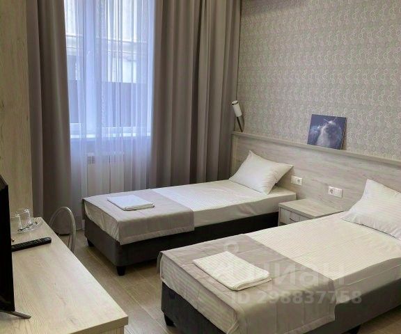 Номер оснащен ванной комнатой с душевой кабиной и санузлом, феном и гигиеническими принадлежностями. Есть холодильник, шторы blackout, теплый ковролин на полу. Вид через панорамное окно на бассейн. Общая площадь каждого номера - 27 кв. м.