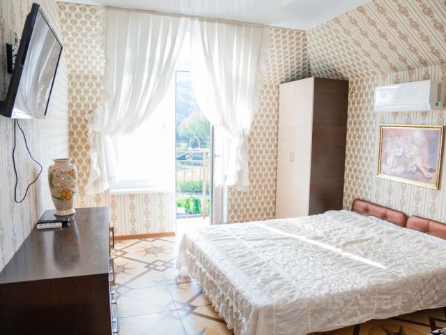 К услугам гостей: 6 разных по дизайну комнат с соляными стенами. Каждый оснащен ванной комнатой с душевой кабиной и санузлом, феном и одноразовыми принадлежностями. Халат и тапочки для каждого гостя. Есть холодильник, чайная станция, шторы blackout, теплый ковролин на полу. Вид через панорамное окно на бассейн, бактерицидная лампа для очистки воздуха. Общая площадь каждого номера - 27 кв. м. В стоимость номера входит ежедневный сеанс со специальным оборудованием, которое насыщает воздух микрочастицами морской соли, воссоздавая в комнате микроклимат соляных пещер.