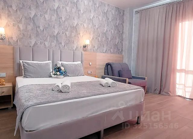 Мы предлагаем новую 3-х местную студию расположенную в 7 минутах пешком до моря! В студии: -Кухня -Двухспальная кровать -Раскладной диван -Санузел В вашем распоряжении: -Кухня с необходимой посудой, электрочайником и электрической панелью -Обеденный стол -Стиральная машина -Wi-Fi -Кондиционер