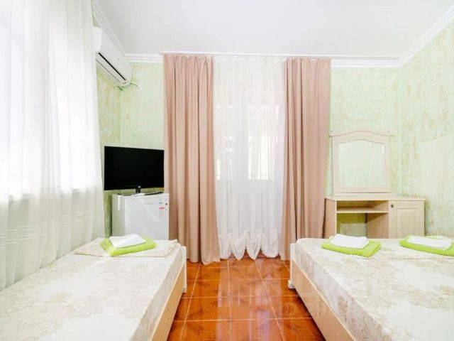 гостевой дом расположен от 2 минут до пляжа Номера оснащены сплит системой ,холодильником ,кухней,необходимой мебелью ,бесплатно вайфай,к услугам стиральная машинка бесплатно и охраняемая автостоянка В шаговой доступности кафе,столовые,мини рынки,магазины ,акво парк,дельфинарий,зоопарк Чтобы узнать о свободных датах напишите или позвоните