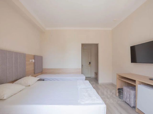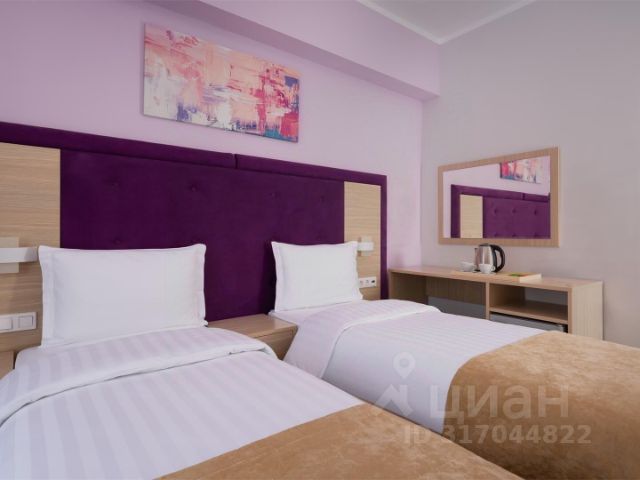 Fioleto Ultra All Inclusive & SPA Anapa Miracleon 4* это новый семейный отель в Анапе, оформленный в современном стиле и предлагающий отдых по системе "ultra all inclusive". С яркими и радующими глаз красками, отель создает сказочную атмосферу лета и радости, которая понравится как детям, так и взрослым. Расположение Отель находится на Пионерском проспекте, всего в 25 минутах езды от центра Анапы, вдали от городской суеты, на первой береговой линии. Собственный оборудованный пляж площадью 1 га располагается в 10 минутах неспешной ходьбы по закрытой территории курорта Мираклеон, с огражденной зоной для размещения гостей отеля. Корпуса и номера Fioleto состоит из четырех корпусов: АЛЬФА главный круглогодичный корпус с 400 номерами, открывшийся 17 апреля 2025 года. БЕТА, ГАММА и ДЕЛЬТА сезонные корпуса, работающие с мая по сентябрь. Общая номерная емкость отеля составляет 726 номеров. Услуги и удобства SPA-комплекс "ВОДА": соединен с корпусом "АЛЬФА" и доступен 24 часа в сутки. Пользование крытым бассейном и парными входит в стоимость проживания, а спа-процедуры предоставляются за дополнительную плату. Бассейны: два открытых подогреваемых бассейна, разделенных на зоны для взрослых и детей, с зоной для отдыха, шезлонгами и баром. Питание: организовано по системе "шведский стол" в ресторанах "ИРИС" и "ЛАВАНДА". Также в корпусе "АЛЬФА" расположен ресторан узбекской кухни "ХАН-АТЛАС", предлагающий уникальное меню. Анимация и развлечения Отель предлагает разнообразную анимационную программу для гостей всех возрастов, детскую комнату с настольными играми и детскую площадку. Дополнительно доступны услуги заказа такси и профессионального фотографа. Проживание возможно только при наличии оригинала паспорта РФ или временного удостоверения личности для граждан с замененным паспортом. Для несовершеннолетних требуется свидетельство о рождении. Граждане других стран должны предоставить документы в соответствии с законодательством РФ. Отель работает по безналичной системе оплаты. Услуга парковки платная, стоимость уточняйте у отеля. Fioleto Ultra All Inclusive & SPA Anapa Miracleon 4* это идеальное место для семейного отдыха, где каждый найдет что-то для себя и сможет насладиться атмосферой уюта и радости. Просторный номер с двумя раздельными кроватями, раскладным креслом. Данная категория номера без балкона.