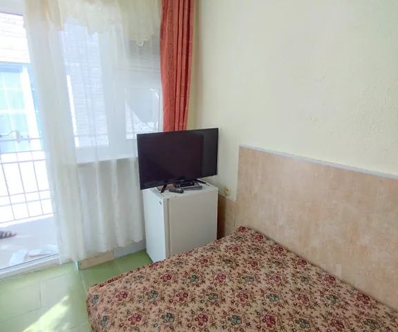 Студия оборудована кухней с индукционной электрической плитой, холодильником и чайником, есть необходимые столовые приборы, сковорода и кастрюля. Кондиционер охлаждает воздух, работает в режиме вентилятора. Совмещённый санузел с душем, туалетом и раковиной с зеркалом. Есть телевизор, обеденный стол и wi-fi. На окне и двери есть маскитная сетка от мух и комаров.
