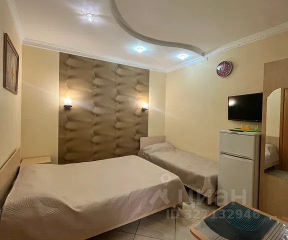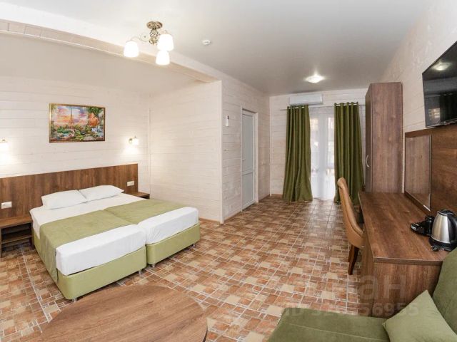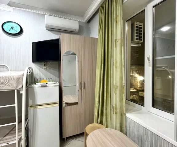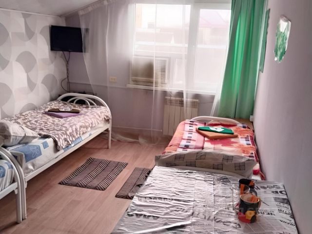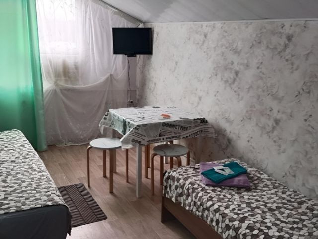 Двухкомнатный номер "комфорт" трёхместный с одной двуспальной кроватью и одной односпальной. В спальне имеется одна двуспальная кровать и одна односпальная, шкаф, прикованные тумбы. В гостиной имеется кухонная зона с плитой для самостоятельного пищеприготовления, раковиной, микроволновой печью, электрическим чайником, всей необходимой посудой, столовыми приборами. Так же в гостиной имеется диван, кухонный стол, стулья, холодильник, сплит-система, телевизор, гладильная доска, утюг. В санузле душ, унитаз, раковина, зеркало, фен, стиральная машина, косметические средства.