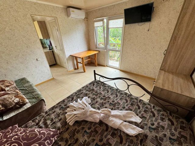 СТУДИЯ НА МОРЕ в самом живописном месте станицы Благовещенской - море с песочными пляжами и пляжным отдыхом, катание на катерах, бананах, сапах, рыбалка - лиман, где купаются и катаются на кайтах, сап-серфинге, виндсерфинге Студия просторная и рассчитана максимально на 4-х взрослых человек, 4 спальных места на 2-х раскладных диванах ИКЕА. Студия оборудована кухней с индукционной электрической плитой, холодильником и чайником, есть необходимые столовые приборы, сковорода и кастрюля. Кондиционер охлаждает воздух, работает в режиме вентилятора. Совмещённый санузел с душем, туалетом и раковиной с зеркалом. Есть телевизор, обеденный стол и wi-fi. На окне и двери есть маскитная сетка от мух и комаров. На террасе есть собственная зона отдыха со столом и стульями, на которой можно пить чай, обедать и отдыхать. На озелененной территории есть мангал, скамейки, столы, скамейка, диван-качели с мягкими подушками и детский бассейн. Парковка находится у ворот рядом с домом. Есть услуги - массажа для женщин и детей, - спа обертывания, уход за кожей, волосами, - логопедических и развивающих занятий для детей, - репетитора по математике, логике, подготовка к школе (оплачиваются дополнительно). Напротив шикарный вид на морскую гладь, приятные прогулки, по утрам и ночью пение птиц, днем можно увидеть неподалёку фазанов, пеликанов, лебедей, цаплей, уток, соек. Услуга трансфера от Ж/Д вокзала оплачивается дополнительно. Все необходимое в шаговой доступности, при наличии машины в 3х-10 минутной; - МОРЕ - 5 минут на авто, 25 - пешком - пляж песочный на море - 25 - 30 минут пешком - пляж лимана песочный - 5 минут пешком - спот для катания на Кайте - 7 минут пешком - Бугазская коса - 4 км - лечебные грязи - 10 минут пешком - центр Почта, ДК, Банкомат Сбербанка, Поликлиника, пункты Яндекс, Оzon, WB - 10 минут - детские площадки, тренажеры - 5 -10 минут - Храмы и Купель - 5 - 10 минут - Аптеки - 10 минут пешком - магазины Пятерочка, Магнит, Красно-Белое, Мясо и др. - 10 - 15 минут пешком - кафе, столовые, кофейни - 10 - 20 минут пешком - остановка транспорта - 7 минут. Студия отапливается тёплым полом, в ней комфортно жить круглый год.