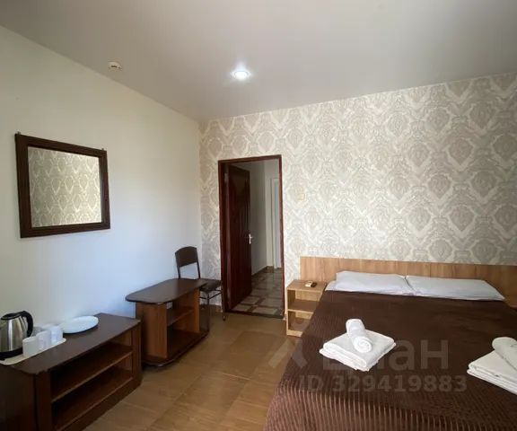 Туркомплекс "Медовые водопады" расположен на территории особо-охраняемого эколого-курортного региона Кавказских Минеральных Вод. На участке туркомплекса находится 5 уникальных водопадов. "Медовые водопады" предлагают номера разных категорий в стиле альпийского шале с кавказским колоритом. Акцент на натуральное дерево в интерьере создаёт атмосферу домашнего уюта, настраивая на гармонию природы, и позволяет отдохнуть от шума мегаполиса, восстановив свою энергию. В распоряжении гостей TV, чайная станция, ванная комната, оснащённая санузлом, душевой кабиной и индивидуальными туалетно-косметическими принадлежностями. Ежедневная тщательная уборка и своевременная смена белья, обеспечивают чистоту и гигиеническую безопасность. Отличный сон обеспечат ортопедический матрас и натуральное постельное бельё. На территории туркомплекса расположено кафе "Боташевские самовары" с видом на самый высокий водопад, летнее кафе самообслуживания и ресторан "Медовые водопады" с банкетным залом на 140 человек, где возможно отведать кавказскую и европейскую кухни (время работы общепита с 10.00 до 18.00). Алкоголь на территории не продаётся. Русская баня на дровах, позволит восстановить силы всех приезжающих. Помимо того на территории туркомплекса "Медовые водопады" расположен этнографический музей "Карачаевское подворье". В музее собраны достопримечательности разных эпох, экспозиции старинной одежды, кухонных приборов, оружия, бытовых предметов. Также рядом расположен сувенирный магазин. Туркомплекс предлагает конные туры. Туркомплекс "Медовые водопады" расположен в Аликоновском ущелье в 26 км от г. Кисловодска. Расстояние до аэропорта Минеральные Воды 62 км, а до ж/д вокзала г. Кисловодска 27 км. Однокомнатный двухместный номер Комфорт с балконом. В номере есть всё необходимое для проживания: шифоньер, телевизор, круглый стол на 2 персоны, чайная станция, уборная с душевой кабиной и гигиеническим душем, мебельный гарнитур, тапочки, фен, халаты, косметические принадлежности, двуспальная кровать, вешалка, зеркало, стулья, посуда, вода, балконная мебель. Живописный вид на Аликоновское ущелье.