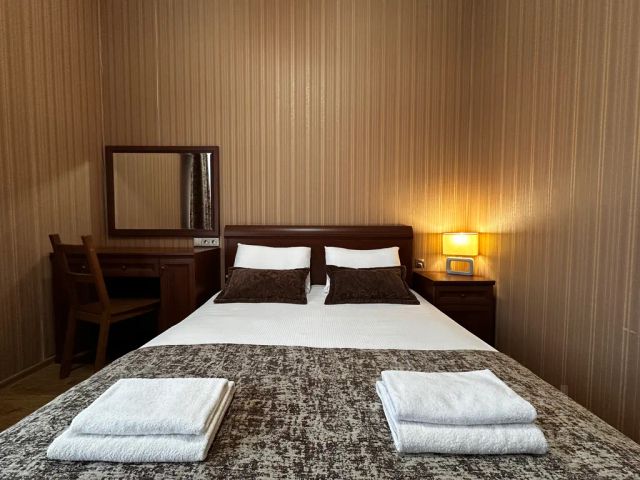 Однокомнатный трёхместный номер, площадью 24 кв. м. В номере имеются: сплит-система, спутниковое телевидение, высокоскоростной интернет, спринг-кровать, шкаф, прикроватные тумбочки, журнальный столик. Санузел включает в себя: душевую кабинку, умывальник, туалетные принадлежности, фен. Номера данной категории находятся на первом этаже.