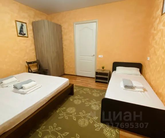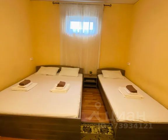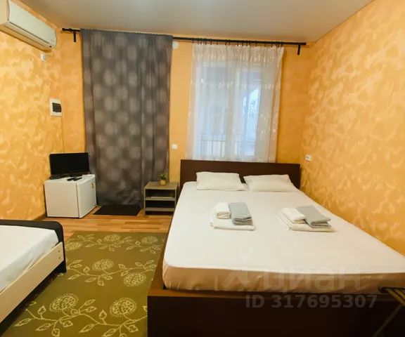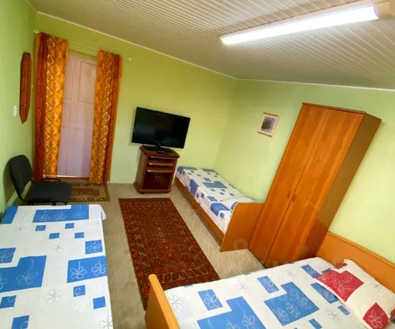 Просторная комната на 3 человека: 1 двуспальная и 1 односпальная кровати, шкаф, комод, холодильник, чайник, посуда, кондиционер. Полноценная ванная комната, совмещённая с туалетом. Комната светлая, так как есть два окна с видом на тихий зелёный переулок. Комната находится на третьем этаже уютного 4-этажного гостевого дома в тихом месте центральной части Анапы, где не слышно шума городской суеты, и вы можете насладиться полноценным отдыхом. Для самостоятельного приготовления пищи оборудованы всем необходимым две кухни. В цветущем дворе под виноградной лозой есть столики под навесом. Есть большой мангал для жарки шашлыков. Для наших гостей в доступе две стиральные машины-автомат. Мы гарантируем вашу безопасность, так как наш гостевой дом находится под охраной. Для вашего автомобиля есть бесплатная парковка. Рядом с нами развитая инфраструктура: в двух шагах круглосуточный мини-маркет, супермаркеты "Пятёрочка", "Магнит", "Спортмастер", аптеки, мясной дворик, рынок, детская площадка, школа, детсады, воинская часть, университет РГУ. А также кафе и столовая, стоматология и спа-комплекс, фитнес-залы. В 3 минутах ходьбы остановка общественного транспорта в разные направления. В шаговой доступности автовокзал. До песчаного пляжа наши гости доходят пешком за 1520 минут. Предоставляем комфортное недорогое жильё командировочным. Принимаем круглосуточно и круглогодично!