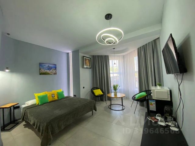Studio room с двумя раздельными кроватями или одной большой и диваном. Можно с животными декоративных пород до 10 кг с обязательным согласованием с администрацией, стоимость размещения животного 1000 рублей в сутки.