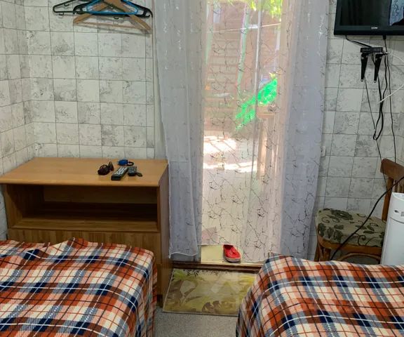 Одноместный эконом номер расположен на втором этаже, в номере есть вентилятор и ТВ. Комод для хранения вещей, вешалки! К номеру относится столик для обедов на общей кухне, посуда и кухонные принадлежности в общем пользовании, холодильник находится на кухне, душевые и туалеты находятся на первом этаже. Во дворе: мангал. Wi-Fi на всей территории. В 350 метрах центральный рынок, парки, огромная бесплатная детская площадка. В 50 м остановка маршрутного такси, на котором можно уехать в любой конец города. В 70 м — два продуктовых магазина. Набережная и берег моря (пляж песчаный) в шаговой доступности с благоустроенной набережной. Аквапарк. Прибрежный рынок. Крокодиловый каньон. Акулий риф. Дельфинарий. Много ресторанов, кафе, дом находится в шаговой доступности от набережной Каменка, пляж песчаный, меляки.