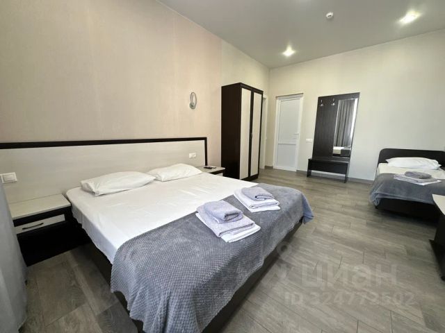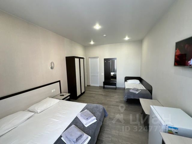 Просторный номер площадью 26 кв м для отдыха 3-х гостей на основных местах. В номере двуспальная и односпальная кровати, сплит-система, смарт-ТВ, мини-холодильник, чайник. В ванной комнате душ, набор полотенец и гигиенических средств для каждого гостя, фен. Кулер, гладильная доска, утюг расположены на этаже. Номер без балкона.