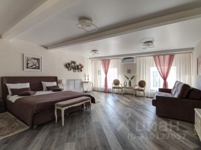 Белоснежный двухкомнатный люкс, с просторной ванной комнатой (душ, ванна, биде, туалет) Большая двухспальная кровать, диван и кресла, тумба, туалетный столик, барная стойка и кондиционер.