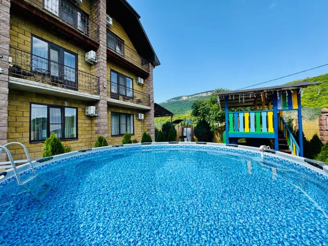 Загородный отель "Даховская Слобода" располагается в станице Даховской. Этот отель находится 2 км от центра города, в центре туристических маршрутов: Лаго-Наки, Гузерипль, Хаджохская теснина, водопады Руфабго. Рядом с отелем — Савранская Канатная Дорога, Даховский мост и Казачий камень (Девичий). В отеле есть бесплатный Wi-Fi. Если гости путешествуют на машине, припарковаться можно будет на парковке рядом. Номерной фонд позволяет разместить единовременно более 180 гостей. Проводится ежедневная уборка и смена постельного белья раз в 2 суток. В стоимость всех номеров включён завтрак и ужин "шведский стол". На территории отеля работает детский клуб. Дети могут провести время без присмотра родителей и насладиться разнообразными активностями как на открытом воздухе, так и в игровой комнате. Детский клуб предлагает мастер-классы, дискотеки и развивающие игры для детей от 4 лет. Время работы клуба с 8:30 до 22:00. Аниматоры проводят интересные программы, которые развивают фантазию, логику и социальные навыки детей. Если родители собрались в горы и боятся, что для их малыша это слишком сложный маршрут, они за дополнительную плату могут заказать услуги няни. В отеле есть единственный в Адыгее SPA-комплекс в виде средневекового замка — четырёхэтажное здание из красного кирпича получило название "Унэдах", что в переводе с адыгейского языка означает "красивый дом". Там можно попариться в сауне и хамаме, и сделать фото в подогреваемом бассейне с панорамным видом на Кавказский хребет. Гостям основной территории также доступен горячий бассейн и сауна с панорамным видом на хребет Уна-Коз. Есть зона джакузи, рядом с бассейном расположены шезлонги, на которых можно позагорать, предоставляются полотенца для купания. Бассейн, сауна, джакузи, шезлонги и полотенца для купания — предоставляются для проживающих бесплатно. В отеле оборудована бесплатная освещённая парковка под видеонаблюдением. Ресторанный комплекс включает в себя ресторан а-ля карт "Даховская Слобода" и ресторан шведской линии, где проходят завтраки и ужины. В отеле можно провести торжественное или деловое мероприятие вместимостью до 50 человек. Зал оснащён мультимедийной техникой. Также для гостей организуется трансфер, экскурсии, конные прогулки и рафтинг. К услугам гостей 41 номер категории "3 звезды" и 26 номеров категории "4 звезды". В каждом номере есть функциональная мебель, санузел, сплит-система, холодильник, фен, телевизор. Загородный отель "Даховская Слобода" располагается в станице Даховской. Этот отель находится 2 км от центра города, в центре туристических маршрутов: Лаго-Наки, Гузерипль, Хаджохская теснина, водопады Руфабго. Рядом с отелем — Савранская Канатная Дорога, Даховский мост и Казачий камень (Девичий). В отеле есть бесплатный Wi-Fi. Если гости путешествуют на машине, припарковаться можно будет на парковке рядом. Номерной фонд позволяет разместить единовременно более 180 гостей. Проводится ежедневная уборка и смена постельного белья раз в 2 суток. В стоимость всех номеров включён