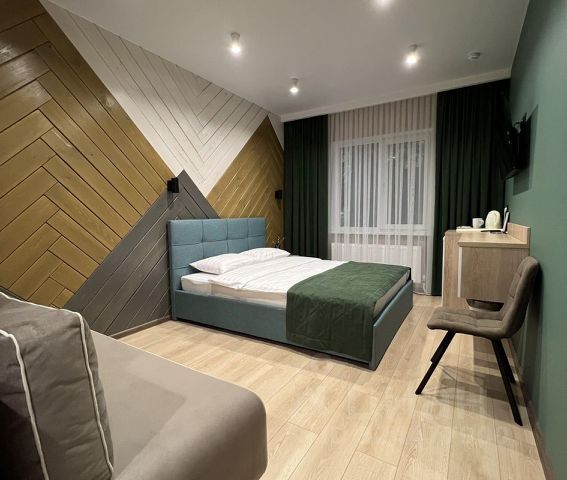 Полностью обновленный! Вся мебель, посуда, техника, бельё новые! Одна жилая комната с двуспальной кроватью, тумбочками, настольными лампами, телевизором, кухонной зоной с холодильником, электрическим чайником, двухконфорочной электрической плитой, микроволновкой и необходимой посудой, средством для мытья посуды. Санузел совмещенный, есть фен, зеркало с подсветкой, душевая кабина, электрическая сушилка для полотенец, мыло, коврики.