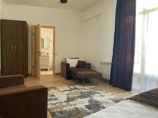 Современный комфортабельный Бутик-Отель — кавказская крепость на берегу горной реки Мзымты. Здание отеля построено в традиционном для Северного Кавказа стиле с использованием большого количества натурального камня и дерева, а общие пространства и номера стилизованы под интерьер конца 19, начала 20 века. Расположен в самом центре интерактивного парка-музея "Моя Россия". В пешей доступности от центра горнолыжного курорта "Роза Хутор" и подъемников. Расстояние до аэропорта составляет 52 км. Всего в отеле 8 номеров с массивной мебелью из красного дерева, тяжелыми парчовыми занавесами, изысканными люстрами и кавказскими узорами. Номера укомплектованы современной мебелью и бытовой техникой, итальянскими халатами и постельным бельем Frette, премиальной косметикой Valentin Yudashkin. В некоторых номерах есть балконы с живописными видами на окружающие отель горы и протекающую под окнами реку Мзымта. К услугам гостей в зимнее время до канатной дороги предоставляется трансфер, который довезет Вас и ваше оборудование. Личный автомобиль можно оставить на парковке отеля. Стойка регистрации работает круглосуточно. На всей территории отеля есть доступ к сети Wi-Fi. Просторный однокомнатный номер с видом на горную реку, оснащенный всем необходимым для комфортной жизни. Отлично подходит для одно- или двухместного проживания.