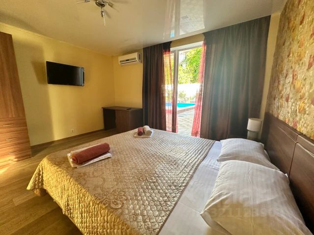 Услуги и удобства: - До моря 900 м, - Два бассейна, - Большой зелёный двор, - Завтрак по запросу, - Мини-кухня с посудой, - Мангальная зона, - Детский уголок, батут, - Камера хранения, - Трансфер, - Стиральная машинка, утюг. Рядом "Магнит", "Пятерочка", кафе. Рынок.
